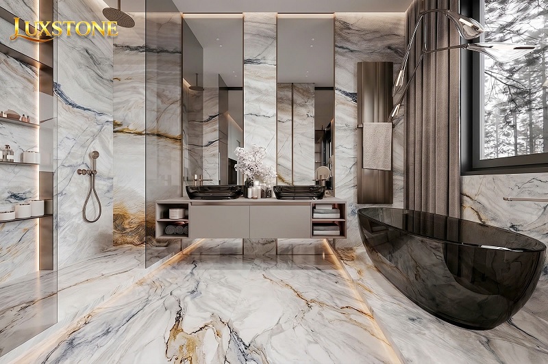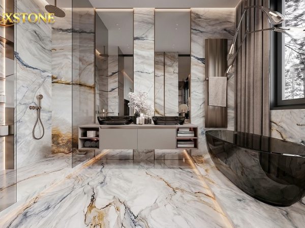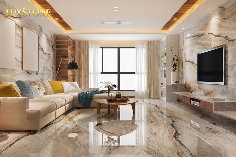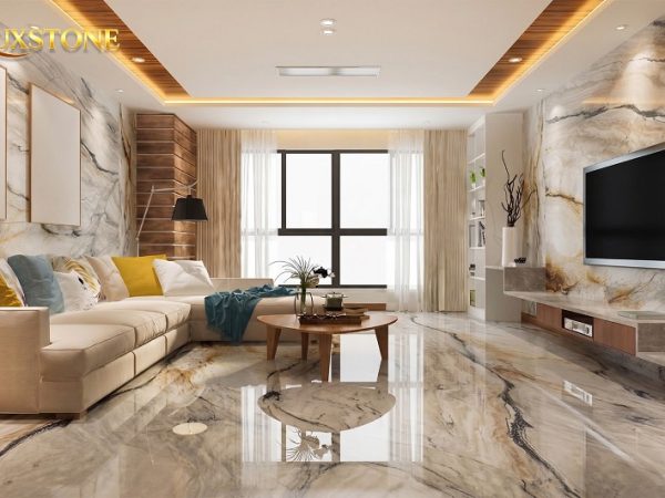 ✨ Giao thoa hoàn mỹ: với tông nền sáng và thanh lịch, phiến đá dễ dàng hòa hợp với mọi phong cách thiết kế, từ hiện đại tối giản đến tân cổ điển sang trọng.